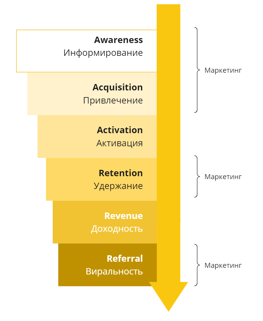Этап Referral связан с реферальной программой. Это может быть как привлечение вебмастеров, так и шеринг ссылкой с друзьями за возможность получить бонусы внутри продукта. В нашем случае это также относится к зоне ответственности команды маркетинга.